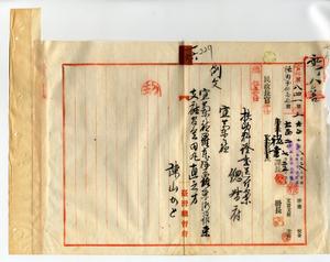 一六 新竹庁マリコワン方面隘勇線前進隊第三部隊トシテ行動中蕃人ト衝突戦死シタル故台湾総督府警部兼宜蘭庁警部諫山幸太郎寡婦諌山かとノ請求ニヨリ遺族扶助料証書ヲ宜蘭庁ヘ送付ノ件