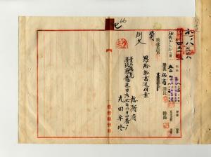 七 マラリアニ罹リ退官シタル元台湾総督府港吏丸田卓修ノ請求ニヨリ恩給証書ヲ台北庁ヘ送付ノ件[但し、86は次件文書原田梅八の履歴書であり、誤綴である。正しくは、98の後に綴られていたと考えられる。]