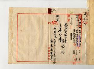 一一 麻拉里亜ニ罹リ退官シタル元台湾総督府鉄道部書記鹿子木義忠ノ請求ニヨリ恩給証書ヲ台北庁ヘ送付ノ件