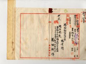 一五 麻刺利亜ニ罹リ退官シタル元台湾総督府税関属藤田新作ノ請求ニヨリ恩給証書ヲ岡山県ヘ送付ノ件
