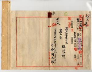 八 満六〇才以上ニテ退官シタル元台湾総督府港吏(渡台前岡山県上道郡書記・岡山県属・陸軍省雇員)河合綱太郎ノ増加恩給請求ニヨリ恩給証書ヲ台北庁ヘ送付ノ件