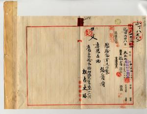 二〇 マラリヤニ罹リ依願退官シタル元台湾総督医院書記根占丈助(渡台前警視庁巡査)ノ恩給請求ニヨリ恩給証書ヲ鹿児島県庁ヘ送付ノ件