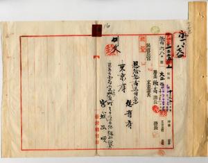 二 疾病ニ罹リ退官シタル元台湾総督府医院書記宮城正順ノ請求ニヨリ恩給証書ヲ東京府ヘ送付ノ件