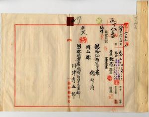 四 麻拉里亜ニ罹リ退官シタル元台湾総督府鉄道部川津秀五郎ノ請求ニヨリ恩給証書ヲ岡山県ヘ送付ノ件