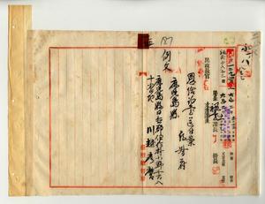 一五 疾病ニヨリ依願退官シタル元台南庁警部川越彦麿(軍籍陸軍騎兵上等兵)ノ恩給請求ニヨリ恩給証書ヲ鹿児島県ヘ送付ノ件