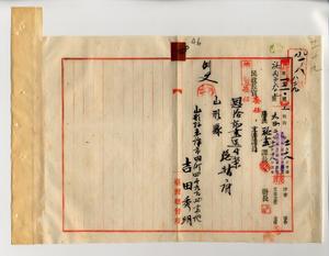四 疾病ニヨリ依願退官シタル元台湾総督府通信属吉田秀明ノ恩給請求ニヨリ恩給証書ヲ山形県ヘ送付ノ件