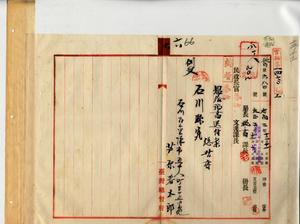 六 疾病ニ罹リ退官シタル元台湾総督府通信属芦原春太郎ノ請求ニヨリ恩給証書ヲ石川県ヘ送付ノ件