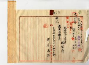 一四 麻拉里亜ニ罹リ依願退官シタル元南投庁警部渕辺元治ノ恩給請求ニヨリ恩給証書ヲ鹿児島県ヘ送付ノ件