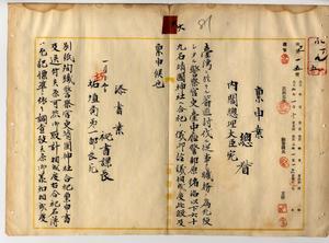 六 明治四四年中ニ蕃匪討伐ニ従事シ職務ノ為メ死歿(軍人ヲ合祀スルト同様ノ情況アル場合ニ於テ直接蕃匪ノ兵刄ニ斃レ戦死同様ノ取扱ヲナシタル者)シタル左記ノ警察官吏台中庁警部原猪治(長野県)、新竹庁警部大田角太郎(兵庫県)、桃園庁警部池本峯三(岡山県)、台湾総督府警部兼阿緱庁警部西初太郎(福岡県)、桃園庁警部補丸田清(鹿児島県)、南投庁警部補石丸兵吉(福岡県)、宜蘭庁巡査荒木丈一郎(佐賀県)・同橋本惣七(佐賀県)・同菅原猶作(新潟県)・同佐伯羊之助(宮城県)・同川上親徳(鹿児島県)、新竹庁巡査小野寺房治(宮城県)・同新井友吉(群馬県)・同山崎嘉作(佐賀県)・同川津又一(佐賀県)・同塩川亮一(鹿児島県)・同楊井栄太郎(山口県)・同柳市治(福岡県)・同渡辺末太郎(大分県)・同渡辺褜三郎(宮城県)・同菅原駒治郎(宮城県)・同堤作市(佐賀県)・同福山市次郎(鹿児島県)・同弓削静雄(福岡県)・同片寄末蔵(福島県)・同畑忠二(兵庫県)・同中庸(石川県)・同乗嶺栄次郎(富山県)・同方留吉(熊本県)・同吉嶺三七(鹿児島県)・同大場藤市(静岡県)・同金子茂(福岡県)・同上野富太郎(和歌山県)・同河野信久(大分県)・同松木速士(大分県)、桃園庁巡査中尾万作(長崎県)・同吉田秀一(熊本県)・同佐藤久治郎(愛知県)・同奈須八十一(広島県)・同永井又蔵(熊本県)・同瀬戸彦三郎(宮城県)・同塚本伊三郎(石川県)・同大屋倉太(福岡県)・同畠中弥久松(高知県)・同久保田勇助(福岡県)・同若井利忠太(新潟県)・同杉山愛太郎(静岡県)・同福岡民重(熊本県)、南投庁巡査佐藤正二郎(岩手県)・同佐伯徳之助(島根県)・同宮本福太郎(熊本県)・同南部金蔵(熊本県)・同兼行梅太郎(福岡県)・同工藤右内(大分県)・同石井義晴(茨城県)・同国友重吉(福岡県)・同森永六十二(大分県)・同綿貫定吉(千葉県)・同松尾忠三郎(福岡県)、台中庁巡査上村長行(鹿児島県)・同山路善市(鹿児島県)、阿緱庁巡査巡与市郎(鹿児島県)・同片居木久太郎(埼玉県)・同木下茂一(熊本県)・同鈴木祚(栃木県)、台東庁巡査力丸貞三郎(福岡県)・同福間彦四郎(熊本県)・同肝付兼満(鹿児島県)、台南県巡査鎌田義潔(青森県)ヲ靖国神社ヘ合祀方内閣総理大臣ヘ稟申ノ件