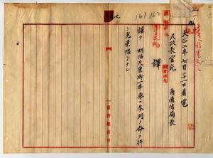 七 明治天皇御一年祭ニ勅任文官代表トシテ在京角源泉通信局長ヲ参列セシムル件