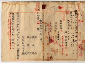 一〇 明治四二年一二月訓令第二〇八号台湾総督府報告例別冊中改正ノ件(訓令第二号)