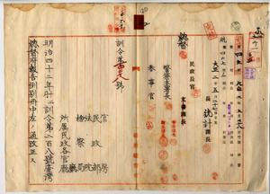 五 警察本署長亀山理平太ノ照会ニヨリ明治四二年一二月訓令第二〇八号台湾総督府報告例別冊中改正ノ件(訓令第一二八号)