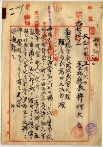 一一 台北庁大加蚋堡大稲埕下奎府聚街総督府医学校卒業生許学ヘ医業免許証下付ノ件