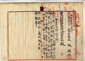 四 台中庁大肚中堡沙轆庄土名斗扺ノ台湾総督府医学校卒業生王劉銅鐘ヨリ医業開業ノ為メ医業免許証下付願出ニ付キ医業免許証下付シタルヲ以テ台中庁長ヘ交付方通牒並ニ処理方台中庁長枝徳二ニヨリ通報ノ件