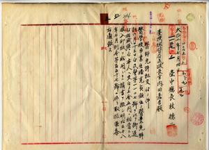 五 台中庁線東堡彰化街土名北門寄留ノ台湾総督府医学校卒業生潘克貞ヨリ医業開業ノ為メ医業免許証下付願出ニ付キ医業免許証下付シタルヲ以テ台中庁長ヘ交付方通牒並ニ処理方台中庁長枝徳二ヨリ通報ノ件