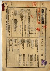 明治四十二年訓令第三十一號判任官各官定員竝配置定員中改正(臺北廳訓令第四號)