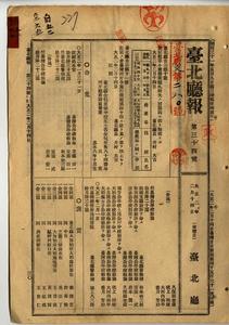 物品販賣行商鑑札所持者所在不明ニ付無效(臺北廳告示第二十號)