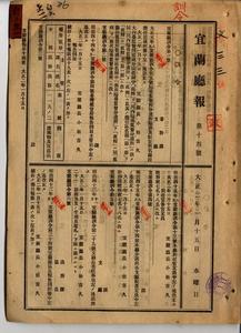 明治四十五年訓令第十四號本廳各課竝各支廳配置定員中改正(宜蘭廳訓令第四號)