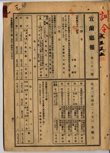 大正元年訓令第六號蕃務所屬警察職員配置定員別冊改正(宜蘭廳訓令第十四號)