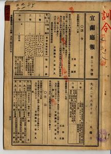 明治四十三年臺灣總督府訓令第一七七號廳警察職員旅費規程第三條ニ依ル蕃務所屬月額旅費等級(宜蘭廳訓令第十六號)