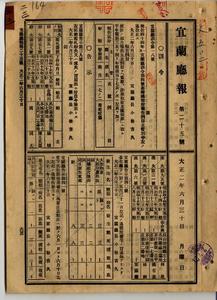 明治四十四年訓令第四號臺灣總督府報告例目主管別中改正(宜蘭廳訓令第十八號)