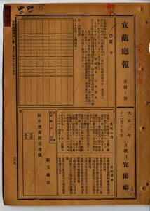 四一 第三六号 大正二年二月訓令第三五号宜蘭庁警察報告例別冊中改正ノ件