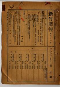 大正二年訓令第一七號新竹廳判任官各官ノ定員中改正(新竹廳訓令第三十號)