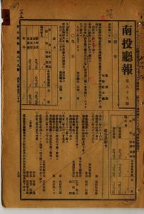 隘勇監督所隘勇監督分遣所隘砲臺連絡所名稱并擔任區域表(南投廳訓令第二十一號)