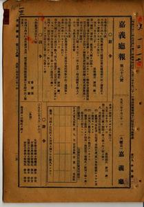 明治四十四年訓令第一號諸營業取締規則施行手續中改正(嘉義廳訓令第十八號)
