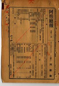 明治四十三年訓令第五四號蕃務所屬警察職員月額旅費等級五等欄ニ追加(阿緱廳訓令第九號)