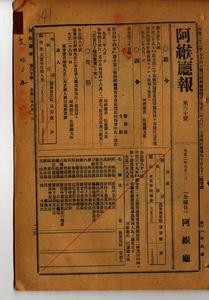 明治四十四年訓令第三號阿緱廳報告事務處理規程別冊中改正(阿緱廳訓令第二十五號)