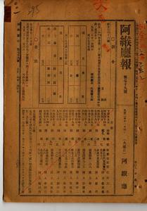 大正二年訓令第二三號本廳判任各官定員并課支廳配置定員中改正(阿緱廳訓令第四十六號)