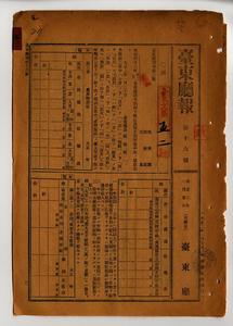 明治四十三年訓令第四十號區長報告例別冊中改正(臺東廳訓令第二號)