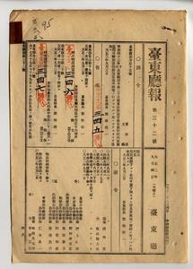三九 第二一号 七月一七日ヨリ一九日ニ亙ル暴風雨罹災者救恤御下賜金ノ件三九-一 台東庁ノ告示供閲ノ件