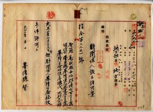 八 基隆公益社設立者総代木村久太郎(原籍鳥取県西伯郡境町・現住所台北庁基隆堡田藔港庄)ヨリ願出ノ、基隆堡基隆街及其付近住民ノ為メ公会堂及海水浴場ノ設備其他救恤慈善公益ニ関スル事業ヲ為ス目的ヲ以テ財団法人基隆公益社設立ヲ許可ス(指令第九九五一号)