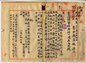 一三 帝国製糖株式会社(台中庁藍興堡台中街一四番地)取締役社長山下秀実及台中庁藍興堡台中街一四番地松岡富雄ヨリ出願ノ土地建物交換願ニ付キ台中庁長枝徳二ヨリ業主権移転登記ヲ了シ国庫所属ニ帰シタル土地ハ台中庁藍興堡東勢仔庄ノ墳墓地ト田ノ二筆ノ国庫地ト共ニ陸軍経理部ヘ引継及ヒ報告ノ件並ニ台南庁長松木茂俊ヨリ松岡富雄ノ台南庁永康下里三份仔庄ノ土地ト帝国製糖株式会社ノ台中庁藍興堡東勢仔庄ノ土地ヲ陸軍経理部ヘ引渡ニ付キ報告ノ件