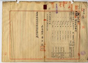 一 嘉義庁長津田毅一ヨリ道路敷地トシテ嘉義西堡山仔頂庄ノ田及ヒ原野ヲ柯宅心・呉樹福・林信・蘇育竒・王牛・林玉崑カラ寄附サレタルニヨリ受納シタルヲ以テ報告ノ件