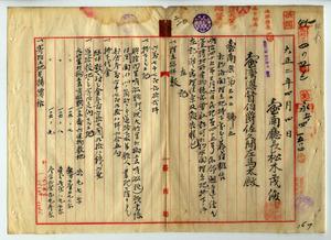 二 打狗港内ノ民間ノ埋立ニ関スル件(20~249、但し203~208を除く。)1 台南庁長松木茂俊ヨリ明治四五年三月六日民地第四〇五号依命通達ニ係ル打狗海面埋立地台湾地所建物株式会社許可打狗水面埋立地ノ分払下処理ニ付キ報告ノ件2 打狗港内ノ埋立ハ地方費区ノ事業トシテ取扱フノ件(22~23)3 鳳山庁管内打狗港内ニ於テ地方費区ノ事業トシテ埋立ツル計画ニ関シ馬公要港部司令官ヘ諮問ノ手続取計方海軍参謀長ヘ照会並ニ台湾総督府海軍参謀長宮地貞辰ヨリ民政長官代理中村是公ヘ右ノ件支障無キ旨回答ノ件(24~26)4 東京市深川区清住街一番地ノ浅野総一郎ヨリ鳳山庁興隆内里打狗水面ノ埋立ニ付キ鳳山庁長横山虎次ノ副申ヲ得テ出願ノ件(27~32)5 東京府浅野惣一郎ヨリ出願ノ打狗港内水面埋立ニ対シ当該埋立ハ将来繁栄上有益ノ事業ニ付キ速カニ竣成セシムルノ必要アルヲ以テ埋立竣工期ヲ五ヶ年間ニ短縮セシメタル等ノ条件ヲ付シ御許可相成度トノ鳳山庁長川田久喜ノ副申ノ件(33)6 東京市深川区清住町一番地浅野惣一郎代理人基隆庁基隆街曽仔藔二番地西沢吉治ヨリ明治三七年一二月一七日鳳山庁ヘ提出シタル鳳山庁興隆内里打狗水面埋立願書ニ関シ訂正ノ必要有之ニ付キ却下相成度旨出願ノ件(34~36)7 浅野惣一郎ノ出願(明治三七年一二月一七日訂正同三九年五月一九日)ニ係ル打狗港内水面埋立ノ件許可シ命令書ノ通心得可キ旨通知(指令第一六四一号)並ニ右ニ付キ鳳山庁長ヘ通達ノ件(37~43)8 浅野総一郎代理人西沢吉治ヨリ出願ノ指令第一六四一号ヲ以テ許可サレタル打狗水面埋立命令書中埋立許可地内船溜ノ位置変更ノ儀ニ関スル件(44~50)9 浅野惣一郎ヘ許可シタル打狗港内水面埋立許可命令第六条中「浚渫汽艇恒春号及之ニ附属スル土捨船弐隻ヲ使用セシムヘシ」ニ付キ一部変更ノ件(51~61)10 鳳山庁長横山虎次ヨリ浅野総一郎ノ出願ニ係ル埋立工事命令書変更ノ件鳳総第六四一一号ノ六(第8件の文書中にあり)ヲ以テ進達ニ及ヒタル処右ハ打狗小学校敷地撰定ニ関係スルヲ以テ至急詮議方総務局長大島久満次ヘ照会ノ件(62)11 明治四〇年八月二六日付民総第五九三五号ヲ以テ通達(第9件の文書中60にあり)ニ対シ鳳山庁長横山虎次ヨリ民政長官祝辰巳ニ回答ノ件(63~64)12 明治四〇年六月三日付ニテ船溜位置変更ニ係ル浅野総一郎ヨリ願出ノ打狗水面埋立命令変更ノ件許可シ難シトノ指令(指令第三六三二号)及ヒ此ノ旨鳳山庁長ヘ通達ノ件 (65~67)13 浅野総一郎ヨリ打狗埋立工事認可願書中復代理人タル鳳山庁興隆内里打狗哨船頭街九番地安田貢ガ工事着区画書添付漏レヲシタル為メ遅延シタルニ依リ改メテ認可方出願ノ件(68~76)14 鳳山庁長横山虎次ヨリ鳳総第三〇四七号ノ一ヲ以テ浅野総一郎ニ対スル打狗港内水面埋立命令変更ノ指令請書送付方明治四一年一二月八日総地理第七五九号ノ九ヲ以テ照会サレタル件ニ付キ右浅野総一郎代理人ヘ督促ニ及ビタル処右指令書未タ東京市ノ浅野総一郎ヨリ回送無キ為メ請書差出シ難キ就テ直接浅野総一郎宛御命令相成リ度旨出願ニ付キ右了知相成リ度総務局長山田新一郎ヘ回答ノ件(77、誤綴で、元文書では、第21件の95~97の文書群中に含まれていたものと思われる。戦後誤って紛れ込んだものではないかとみられる。)15 鳳山庁長ヨリ浅野惣一郎提出ニ係ル打狗埋立実施設計ハ未タ認可相成ラサルモ土砂ノ採取ハ差閊ナキヤトノ民政長官ヘ伺電報並ニ鳳山庁長ヘ土砂ノ採取ハ追テ何分ノ沙汰スル迄差止メラレタシトノ返電ノ件(78~80)16 浅野総一郎ニ許可シタル打狗港内埋立地中公共用及官用ニ供スヘキ部分ノ面積位置及区域決定セラレタルニ付キ同人ヘ示達(指令第一三四〇号)及ヒ鳳山庁長ヘ通達ノ件(81~84)17 鳳山庁長横山虎次ヨリ右通達(16のこと)書中命令書ノ添付無キニ付キ民政長官代理通信局長鹿子木小五郎ヘ照会並ニ本件ニ付キ浅野総一郎ヘ直接発送シタリタル旨同庁長ヘ回答ノ件(85~86)18 土木局長心得長尾半平ヨリ水面埋立工事ニ於テ鳳山庁興隆内里打狗哨船頭土石採取場ノ三千坪ヲ限リ採取スルコトヲ認メル旨総務局長事務取扱鹿子木小五郎ヘ照会ノ件(87~88)19 右ノ照会ニ依リ浅野総一郎ヘ許可シタル打狗港水面埋立ハ海底浚渫ヨリ得タル土砂ヲ以テ行フベキ条件タル命令第三条ガアリタルモ今回打狗小学校新営ノ為メ不用トナリタル土砂ヲ埋立工事ニ使用スルモ可ナルヲ以テ学校新営地域内ヨリ三千坪ヲ限リ採取方浅野総一郎ヘ命令ノ件並ニ其ノ旨鳳山庁長ヘ通達ノ件(89~90)20 鳳山庁長横山虎次ヨリ民政長官大島久満次ヘ明治三九年六月一四日指令第一六四一号ヲ以テ許可セラレタル打狗港内水面埋立ニ要スル土砂ニ付キ指定域内三千坪ニ限リ採取方明治四一年六月二九日付命令ニ対シ浅野総一郎及ヒ代理人西沢吉治ト復代理人沢田景久ノ連名ニヨル請書回送ノ件(91~94)21 浅野総一郎ニ対スル打狗港内水面埋立命令変更ノ指令請書送付方ニ付キ鳳山庁長横山虎次ト総務局長山田新一郎間ノ照会ノ件(95~97、第14件のもの、第14件を見よ)22 浅野総一郎ヘノ明治四一年四月一七日付指令第一三四〇号ヲ以テ打狗港内水面埋立命令変