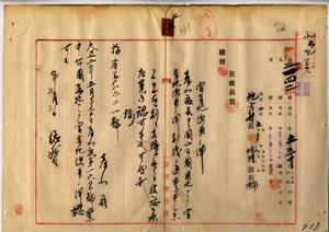 五 台北庁長井村大吉ヨリ稟申ノ官有地ノ台北庁大加蚋堡山仔脚庄ノ畑及建物敷地ヲ円山公園用地トシテ使用ノ件認可(指令第八六二一号)