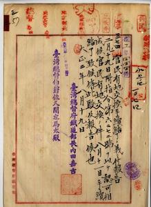 三 台湾総督府鉄道部長代理新元鹿之助ヨリ打狗停車場用地トシテ陳中和(台南庁大竹里苓雅藔庄)ガ所有シテイル民有地ノ台南庁大竹里打狗土名哨船頭ノ原野ヲ官有地ノ台南庁大竹里打狗土名哨船頭ノ鉄道用地ト交換ノ件認可ノ件(指令第六二七二号)並ニ台湾総督府鉄道部長内田嘉吉ヨリ官民有地交換手続結了ニ付キ報告ノ件
