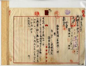 四 台湾総督府海軍参謀長東郷吉太郎ヨリ至急ヲ以テ依頼サレタ打狗港苓雅藔ヨリ温藔仔ニ至ル海岸附近一帯ノ地ハ海軍用地トシテ買収スル事ニ決定シタルニヨリ現在民間ニ於テ行ハレテイル売買ヲ停止サセル様取計方並ニ添付シタル地図中買収予定地タル赤線区域内ノ買収調書方ニヨリ実施シタル全テノ苓雅藔庄・過田仔庄・戯獅甲庄ノ土地買収ニ関スル件一括