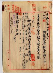 一五 阿緱庁長佐藤謙太郎ヨリ神明会所属財産異動トシテ阿緱庁港西中里海豊庄ノ玄天上帝ノ祠廟敷地処分ニ関スル報告ノ件