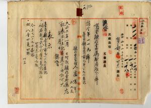 一九 台南市乙ノ徳化堂管理人盧震亨ト斎友総代ノ王順安・薛塗成ヨリ徳化堂所属財産ノ台南市乙ノ祠廟敷地ト畑ヲ台湾銀行宿舎移転先予定地トシテ売却認可方願出ニ付キ許可ノ件(指令第一一九号)
