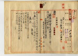 二五 阿緱庁港西中里崇蘭庄ノ福徳爺会管理人陳山和ト信徒ノ陳悪・陳英、阿緱区長許宋朝ヨリ創設以来会員三代ヲ経会員中創設者ト信仰ヲ異ニスル者ヲ生シ維持シ難キニ付キ会員協議ヲ以テ廃スルコトヲ決定シタルニヨリ神明会所属財産ノ阿緱庁港西中里崇蘭庄ノ田・畑及ヒ同里阿緱街ノ田ヲ処分シ売却ニヨル金員ハ会員ニ於テ等分スルノ許可方願出ニ付キ許可ノ件(指令第二四六号)