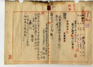 二九 台南市乙ノ永華宮管理人陳炳煌ト信徒総代ノ葉再伝・揚瑞謙ヨリ永華宮所属財産ノ台南市乙ノ畑ヲ台湾銀行宿舎移転先予定地トシテ売却認可方願出ニ付キ許可ノ件(指令第六一〇七号)