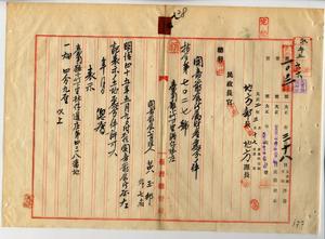 九 台南庁小竹下里港仔捕庄土名港仔埔ノ関帝爺ノ管理人黄玉邦、同会員ノ黄天生、黄尤白・黄欉・鄭氏治・蔡万枝・周黄批・黄玉邦、林仔辺区長黄玉邦ヨリ願出ノ台南庁小竹下里林仔辺庄第四三八番地ノ畑ヲ林仔辺公学校校舎新築建物敷地トシテ寄附ニ係ル本島旧慣ニ依ル廟宇所属財産処分願ノ件許可ス(指令第七〇二八号)