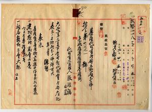 一五 台北庁基隆堡基隆街土名後井仔ノ代明宮管理人張添福ト信徒総代ノ鐘金瓜・羅欽ヨリ出願ノ代明宮ノ基隆堡基隆街土名後井仔ノ建物敷地ト祠廟敷地ガ基隆高砂公園区域ニ該当スルヲ以テ売却方許可ノ件(指令第七七七一号)