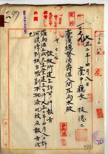 一八 台中庁長枝徳二ヨリスペイン国籍ニテ台中庁東螺東堡大新庄居住フスト・サシアン申請ノ台中庁武東堡卓乃潭庄ニ羅馬法王派天主堂ヲ建立ノ件許可シタルニ付キ報告ノ件