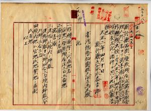 一九 新竹庁長家永泰吉郎ヨリ新竹庁苗栗一堡崁頭屋庄万善廟移転願ヲ許可シタルニ付キ報告ノ件