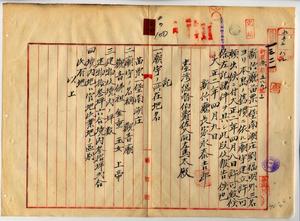 二〇 新竹庁長家永泰吉郎ヨリ新竹庁苗栗一堡南湖庄劉福明外三名(未記載)ヨリ本島ノ旧慣ニ依ル廟宇建立許可願出ニ付苗栗一堡南湖庄ニ観音廟観音仏祖金童玉女上帝ノ建立ヲ許可シタルニ付報告ノ件